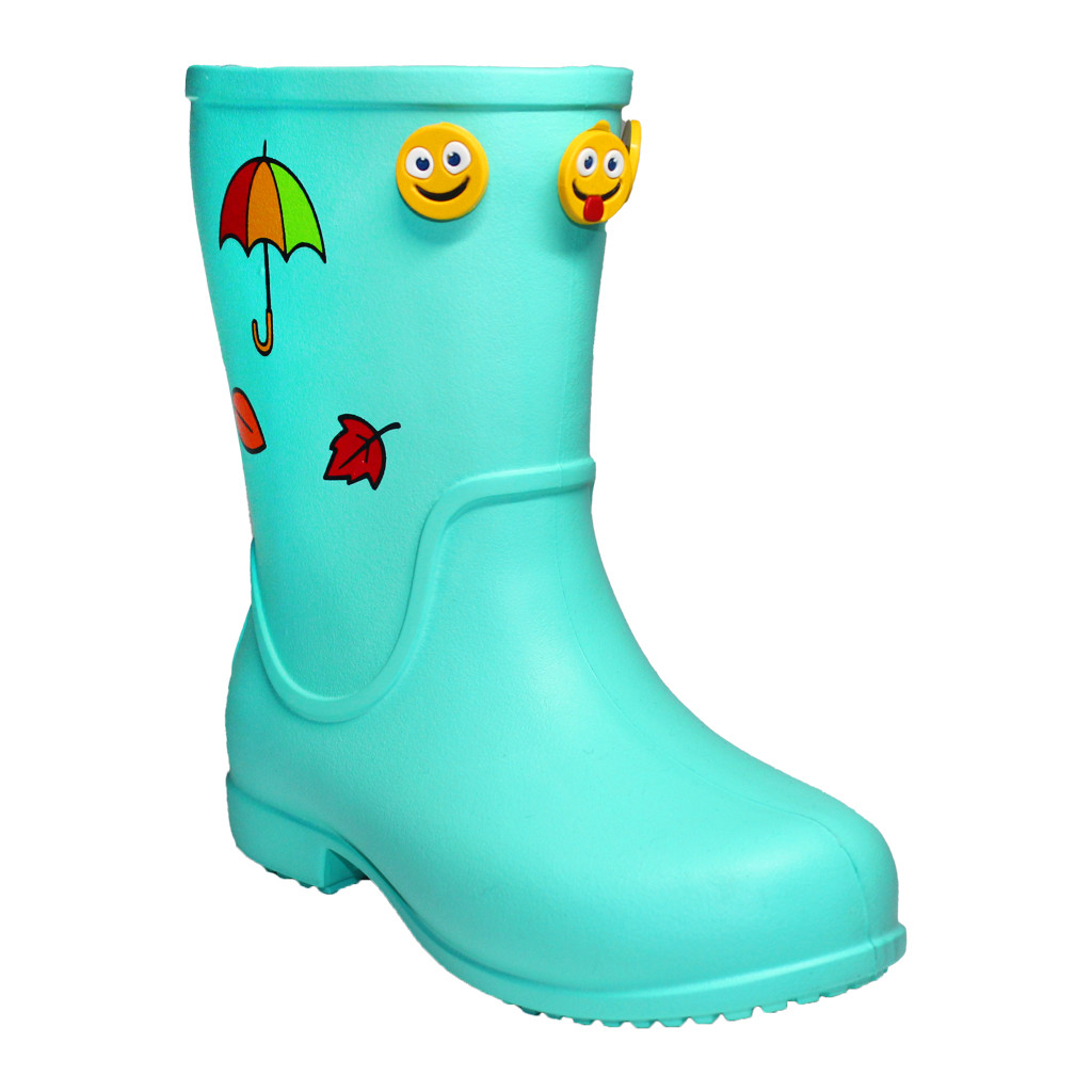 Особливість цієї моделі — різнокольорові наліпки із парасольками та листочками, які роблять взуття ще яскравішим і привабливішим для дітей. Такі чобітки не лише практичні, а й стильні.Легкі, водонепроникні та яскраві чобітки з ЕВА стануть надійним взуттям для прогулянок у дощ та сльоту. Завдяки властивостям полімерного матеріалу ЕВА ніжки дитини залишаються сухими й у теплі навіть у прохолодну погоду.